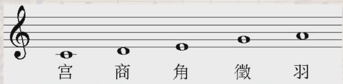 假设宫音对应中央$C$,得到五声音阶$C,D,E,G,A$。