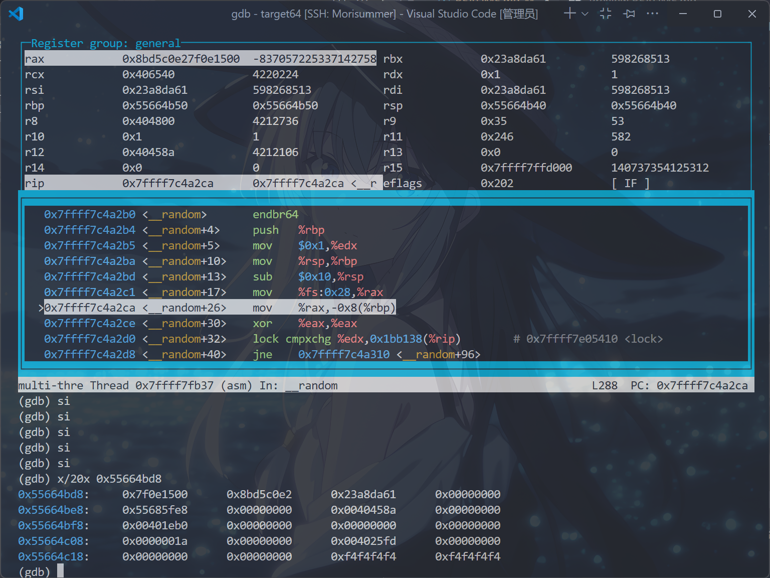 401f0d: 48 89 45 f8 mov %rax,-0x8(%rbp) # 金丝雀存在%rsp+280