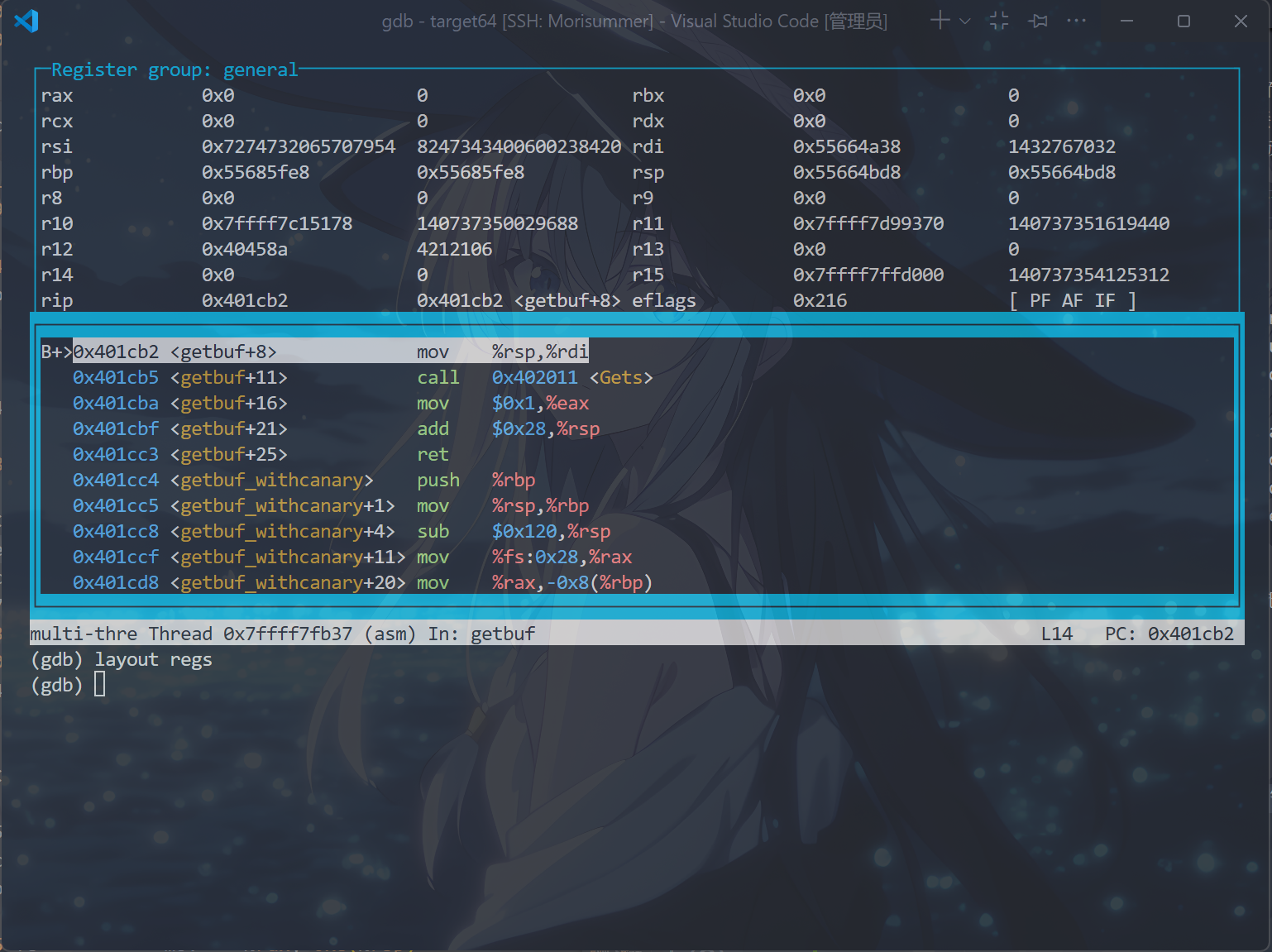 阅读test2函数的源码,可以发现它调用了新的读取函数getbuf_withcanary: