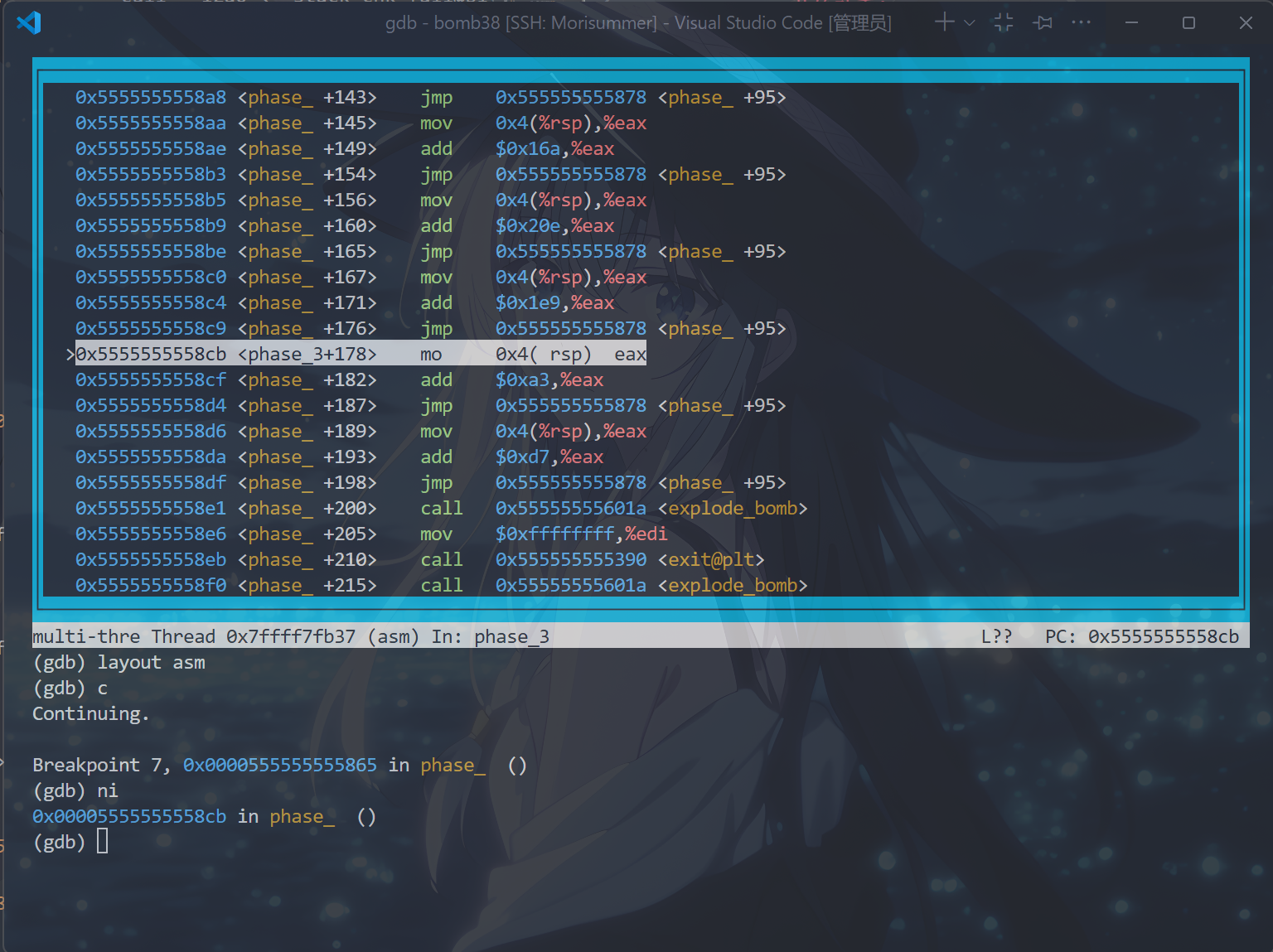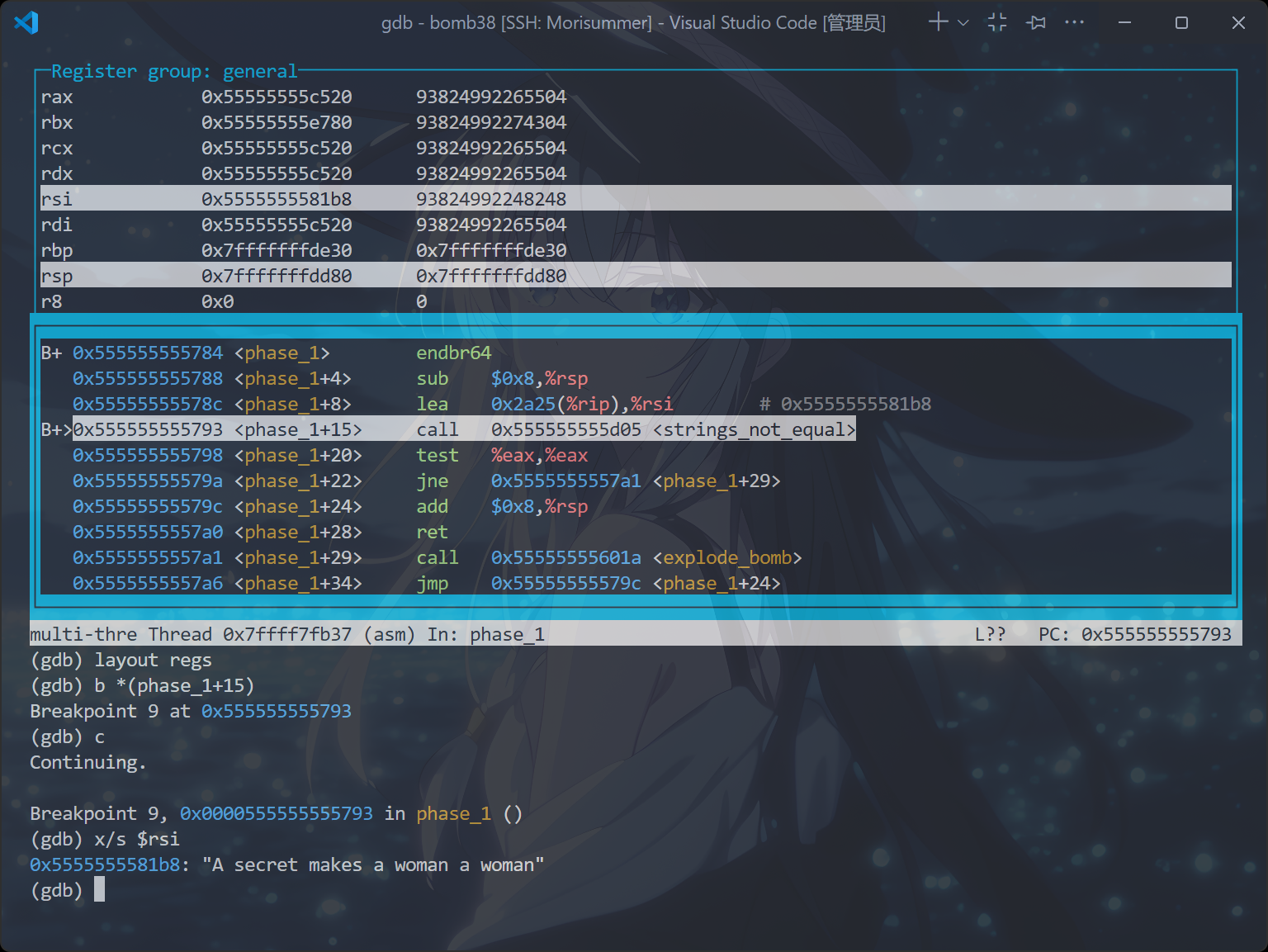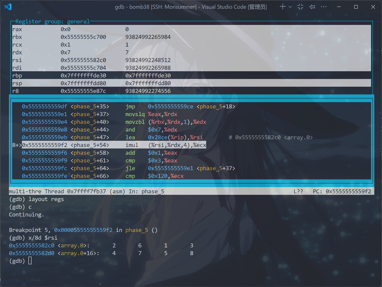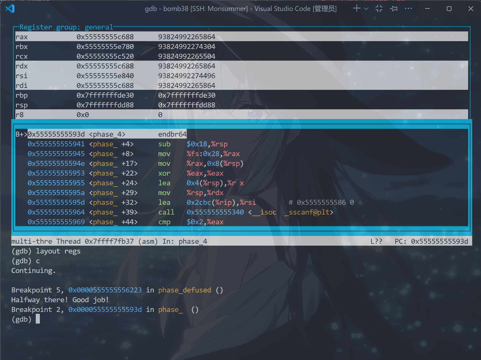 b phase_x // 这条如果配置了.gdbinit文件就无须再输入
